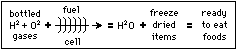 Already we freeze-dry most foods destined for space, saving all the weight of the associated water. To rehydrate the food, we use water manufactured in space as a by-product of the orbiter chemical fuel cell energy system which runs on bottled hydrogen and oxygen brought up from Earth - but now, we are not also bringing up extra water just for food and drink.